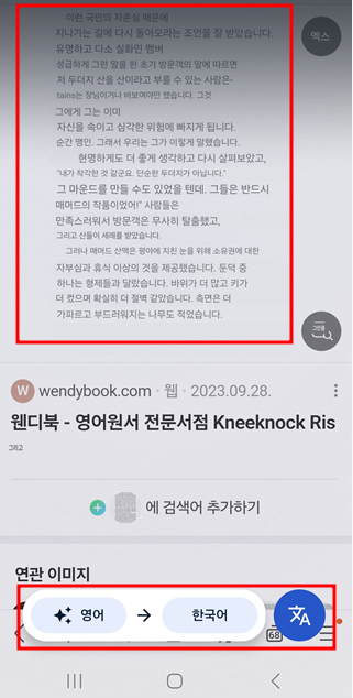 번역이 필요한 문장을 촬영하지 않아도, 화면에서 바로 번역할 수 있는 매우 편리한 기능입니다.