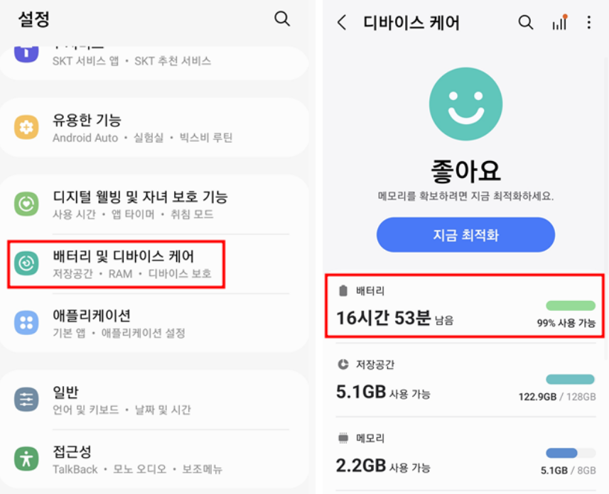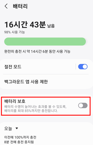 2. 갤럭시 스마트폰 배터리 보호 설정방법
