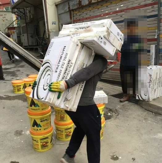 이들의 역할은 특히 중요한데, 대형 장비가 진입하기 어려운 좁은 공간이나 높은 층으로 자재를 옮기는 일을 담당하기 때문입니다.