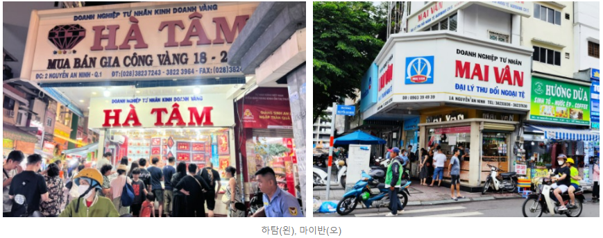 정확한 위치는 호치민 벤탄시장 쪽에 있고 서로 마주보고 있는 하탐, 마이반 2곳의 환전소가 가장 유명합니다. 이때 환전은 우리나라 돈으로 환전하는 게 아니라 달러로 환전하니 참고하시길 바랍니다.