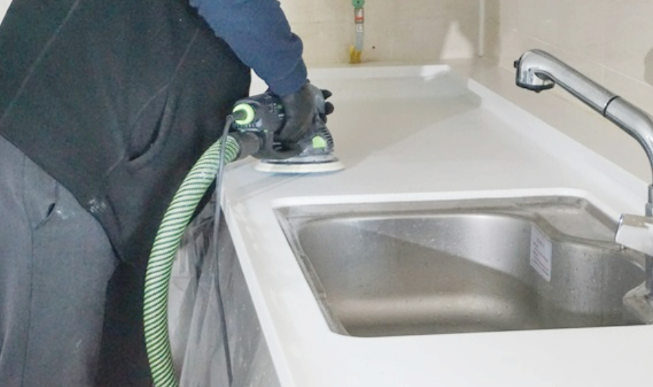 - 보양 작업 및 표면 세정: 코팅할 부분 외의 영역을 보호하고, 상판 표면을 깨끗이 세정합니다.