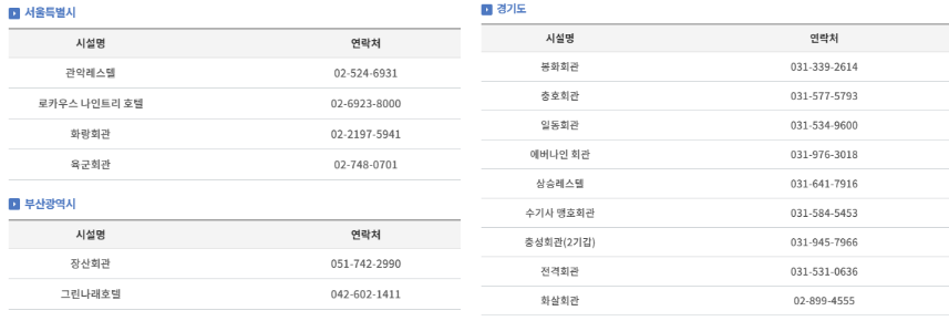 대부분의 회관은 1950년대부터 지어진 곳이 많아 상대적으로 오래된 시설이 많습니다. 이런 오래된 시설들은 현대적인 편의시설이 부족할 수 있으므로 가능하면 회관은 피하는 것이 좋습니다.