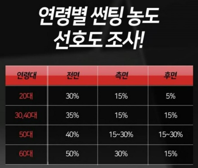 개인적으로 추천하는 썬팅 농도는 앞유리 50%, 옆유리(1열) 35%, 옆유리(2열) 15%, 뒷유리 15%입니다. 앞유리의 농도를 50%로 설정하면 더 나은 시야 확보가 가능하며, 야간 운전 시에도 안전을 도모할 수 있습니다.