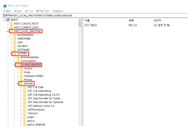 그러면 레지스트리 편집기에 들어가게 될텐데 HKEY_LOCAL_MACHINE\SYSTEM\CurrentControlSet\Services\Ndu의 순서대로 들어가 주시면 됩니다.