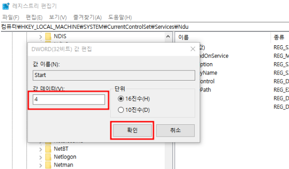 Ndu폴더에서 Start를 더블클릭하고 데이터를 2에서 4로 변경 후 확인을 누르고 윈도우 재부팅하시면 됩니다. 이렇게 해봤는데 별 차이를 못 느끼겠다면 아래의 방법도 추가로 해보시길 바랍니다.