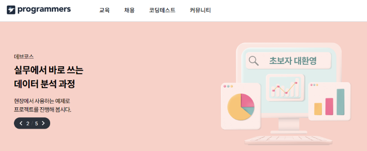 원래는 코딩 테스트 연습용도로 유명한 사이트 인데요. 교육용 컨텐츠도 실습기와 함께 제공하고 있습니다. programmers 도 역시 중간중간 동영상강의가 등장한 형태입니다.