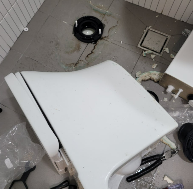 1) 기존 변기 분리: 먼저 바닥과 변기를 고정하고 있는 백색시멘트를 제거합니다. 이 과정에서 주의해야 할 점은 배관이나 바닥을 손상시키지 않도록 조심스럽게 작업해야 한다는 것입니다.