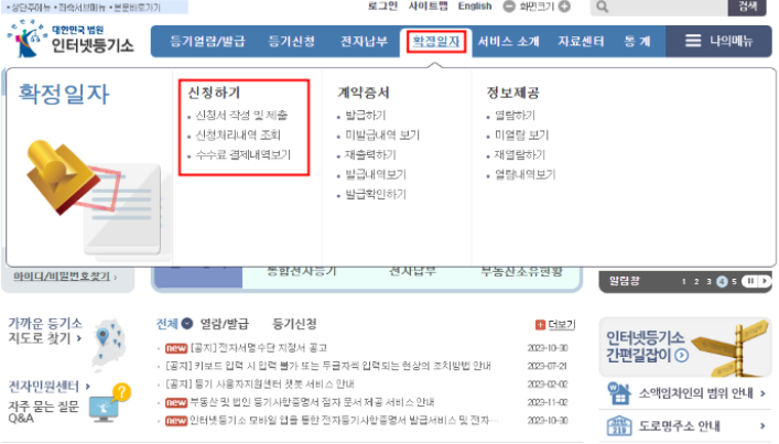 확정일자는 온라인과 오프라인 두 가지 방법을 통해 모두 가능한데요. 먼저 온라인 사이트를 통해 확정일자를 받는 방법은 대한민국 법원 인터넷 등기소 홈페이지를 활용하시는 방법이 있습니다.
