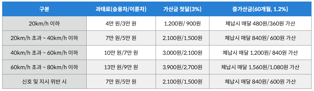 과속 및 신호위반에 대한 과태료와 범칙금은 위반 정도에 따라 차등 적용됩니다. 이는 위반의 심각성에 따라 적절한 제재를 가하기 위함입니다.