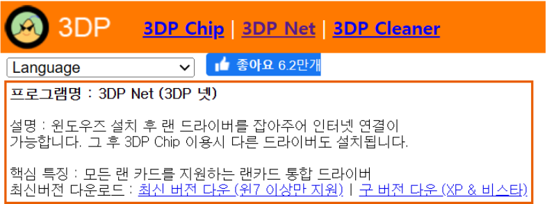 3DP Net은 Windows 운영체제를 사용하는 컴퓨터의 네트워크 어댑터 드라이버가 없을 때 랜카드 드라이버를 찾아주는 프로그램입니다.